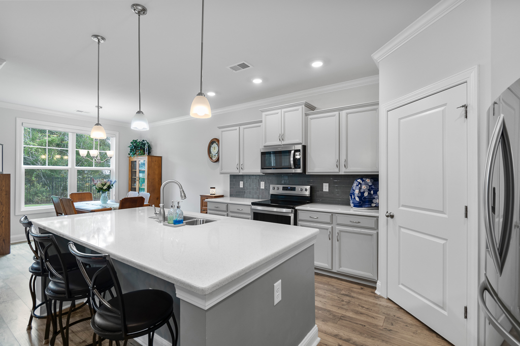 - Upgraded cabinetry, pantry, and tiled backsplash