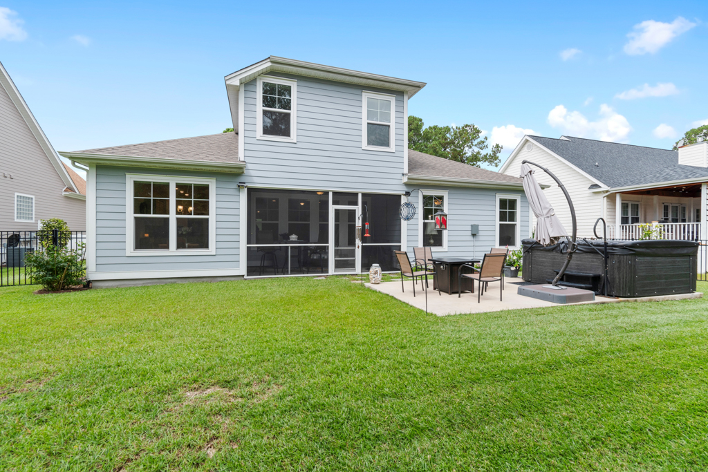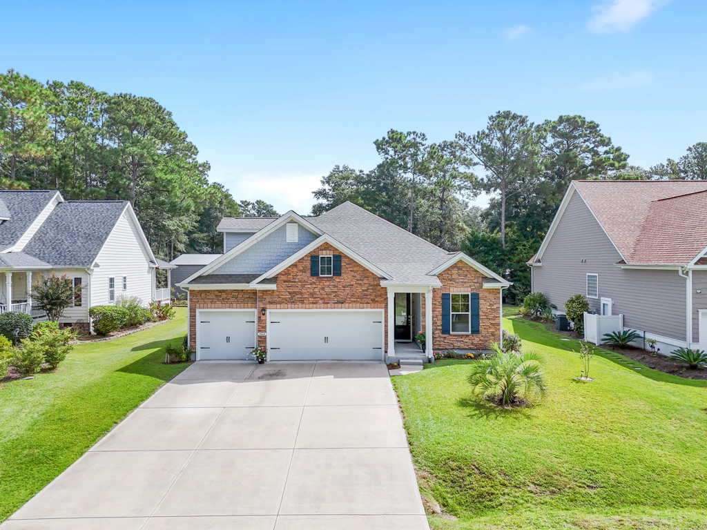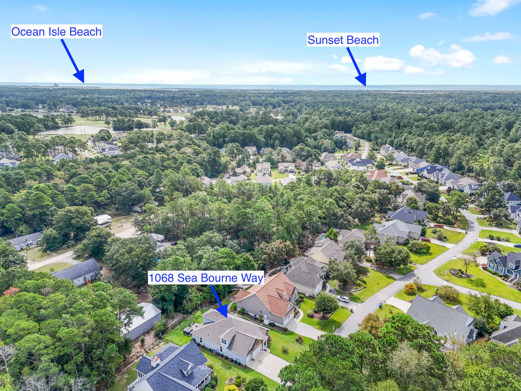 There is more than ample storage in this home, with ten closets and additional walk-in storage accessible from the bonus room. The main floor living area boasts very comfortable space and would easily accommodate a generous amount of furniture. The sizable screened porch and enlarged patio offer very pleasant outdoor space as well. These conscientious owners have done some very nice ”extras” already for you, such as tile backsplash in the kitchen, extra outlets in the garage, irrigation, and custom roller shades in all windows. The location of this home is absolutely fantastic, nestled in the quaint town of Sunset Beach, approximately 10 minutes from the beach and a stone’s throw from the town area of Calabash, with its seafood restaurants and shopping.
