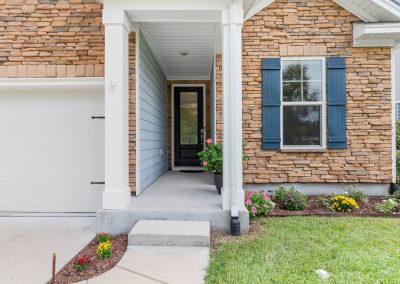 - Exterior is fiber cement siding with stone accent—durable and maintenance friendly