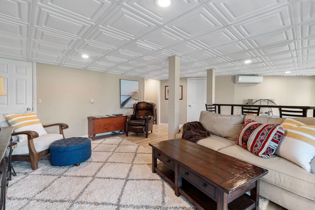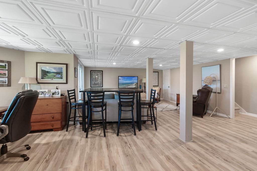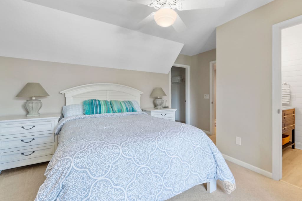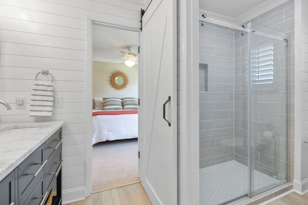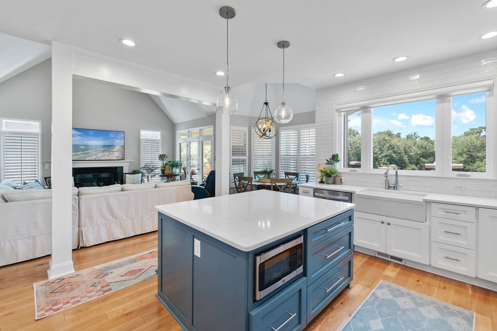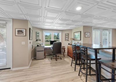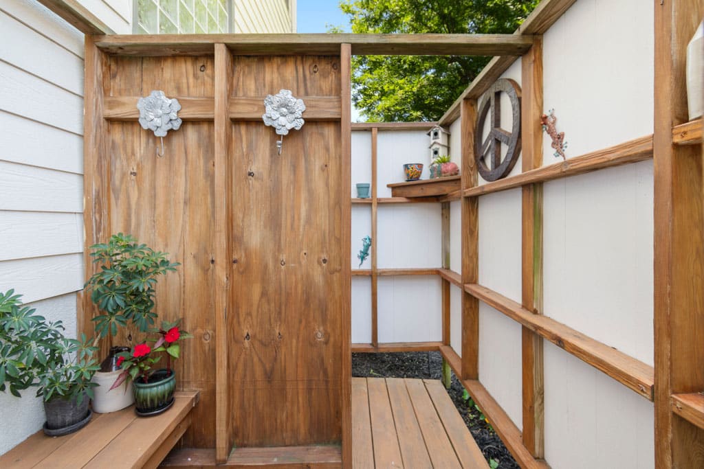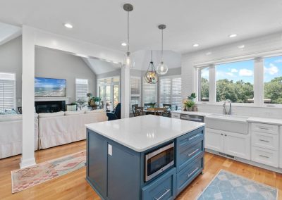 There is plenty of room to stretch out here, with the primary bedroom downstairs along with the kitchen, living room, dining room, sunroom, powder room and a den. Upstairs are two additional bedrooms, a bonus room and a full bathroom so guests can have their own space, and you can maintain your privacy. The primary suite is your retreat at the end of the day, with generous space and a beautiful bathroom with tiled, walk-in shower. It is very difficult to find a basement of any type in this area, so this walkout basement with adjoining storage area is a rare gem! It opens to a spacious covered patio area, adjacent to the outdoor shower. Recent updates include a remodeled kitchen that was opened up to the living room, with new cabinetry, an added island, and new counters and flooring.