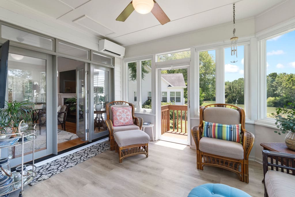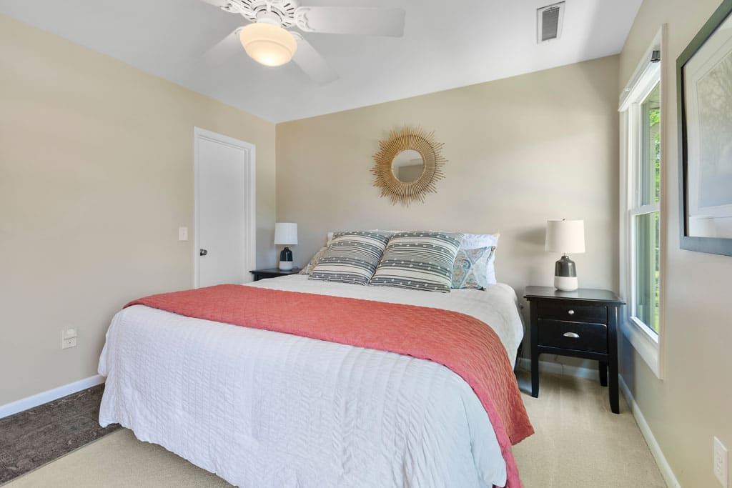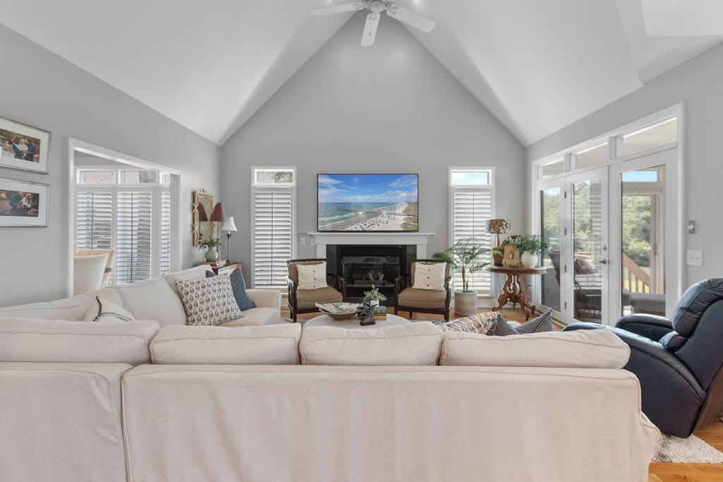 The interior and exterior of the home were painted, and bathrooms remodeled as well. The former screened porch was glassed in and a mini-split system added, so the beautiful setting can be enjoyed year round. Windows were replaced in most of the home, the walkout basement was renovated with new flooring, drywall and ceiling, and the outdoor shower was also updated. There are plenty of nice extras here, including plantation shutters, custom shades, a gas water heater, newer gutters, two newer HVAC units, and back-up propane generator. This location could not be any more convenient.