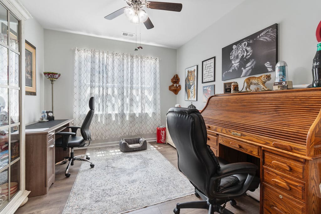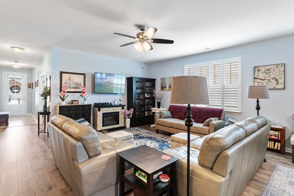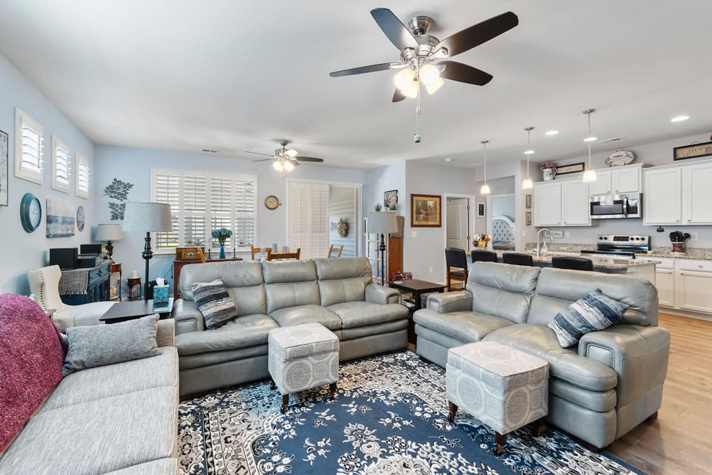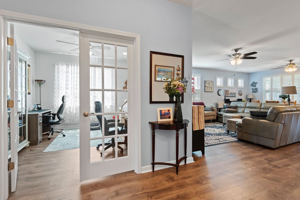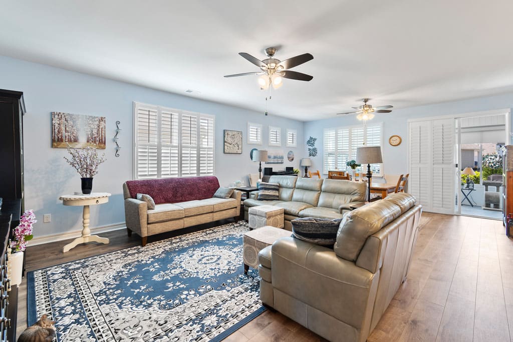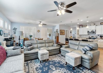This spacious, open concept home has been extremely well kept by its conscientious owners, and is ready to be YOUR home! The downstairs consists of the primary bedroom, one guest bedroom, two bathrooms, an office/flex room, laundry room, kitchen, dining area, and a very nicely sized living room. There is a second guest bedroom upstairs along with the bonus room and additional storage closets. This is a very efficient and comfortable floor plan with plenty of space. The kitchen, dining area and living room are all adjacent to each other, offering plenty of space for entertaining or spending time with family. Plantation shutters adorn the windows, and even the slider that leads to the screened porch.