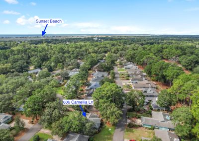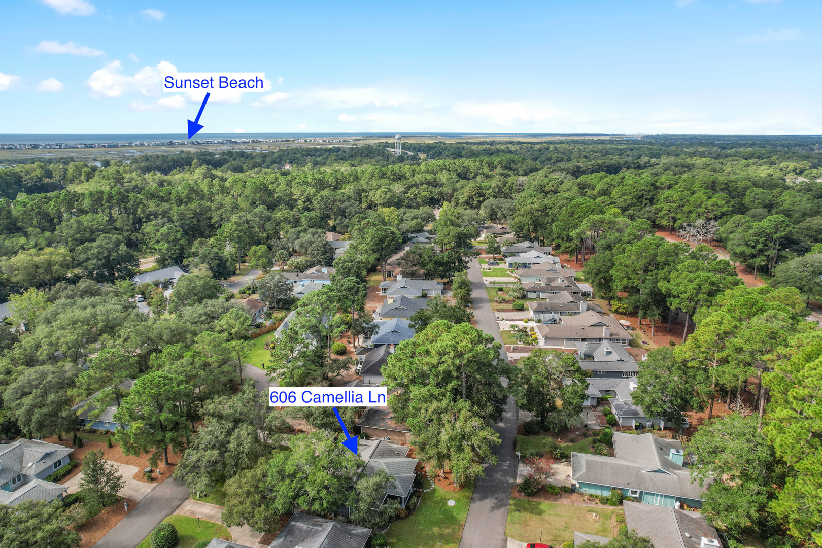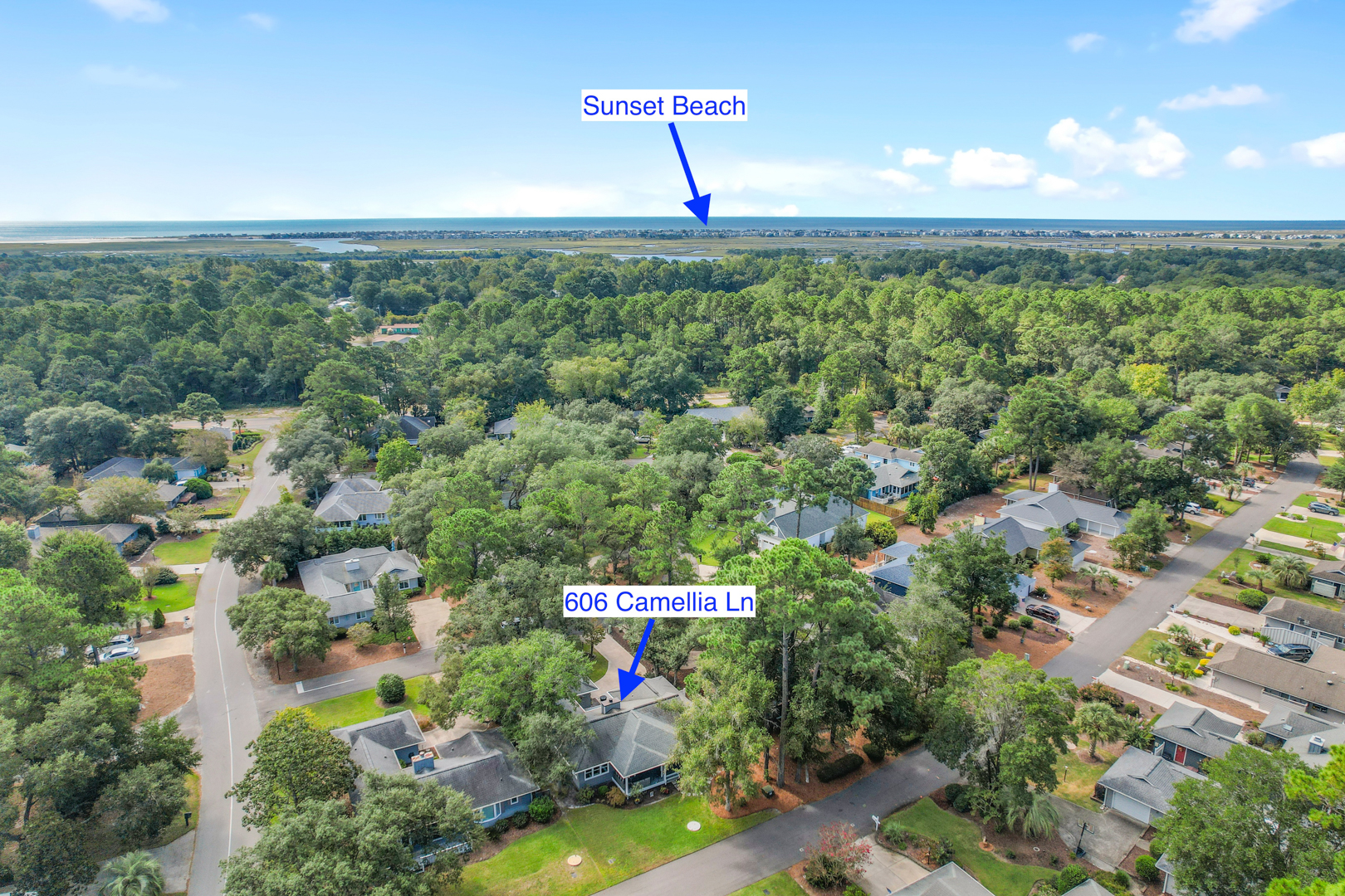 Welcome to 606 Camellia Lane, located in the amenity-rich community of Sea Trail Plantation, just minutes from the white sands of the award winning Sunset Beach! This two bedroom/two bath home, nestled on a quiet cup-de-sac with sweeping oak trees, will not disappoint. Brightly lit kitchen with granite counter tops, white cabinets, and stainless steel appliances. Floor to ceiling brick wood-burning fireplace offers such an inviting ambiance in the living room. Sliding glass doors expand out to the covered porch. The cozy sunroom offers additional living space, situated near the living room and dining room. The garage has been transformed into a great hangout/entertainment area. Some other features of this home: LPV flooring throughout (no carpet), Laundry room directly off the kitchen, new washer and dryer, newer appliances, beautiful back yard, New heat pump in 2023 (heat/a/c), plantation shutters, and custom blinds. Sea Trail Plantation also has so much to offer! Three spectacular golf courses, along with so many amenities. Clubhouses, community pools, fitness center, meeting/party rooms, hot tub, tennis/pickleball courts, and private parking on Sunset Beach! You won’t want to miss this home! Furniture/decor negotiable