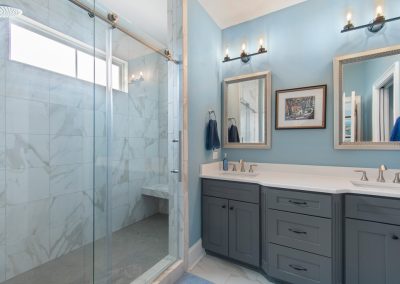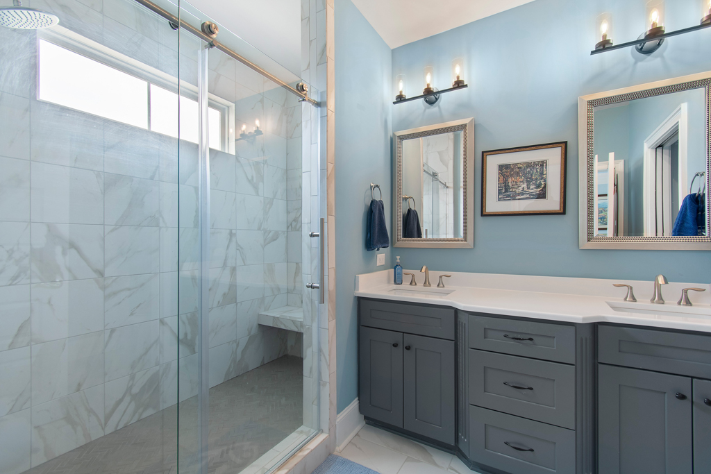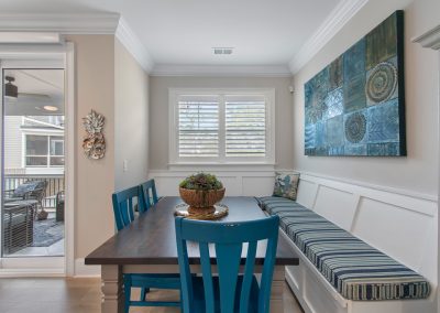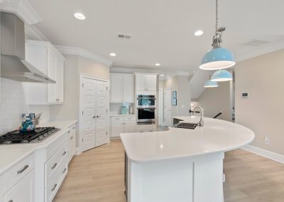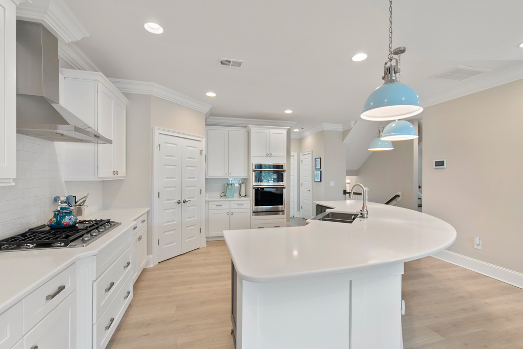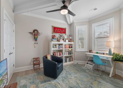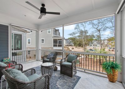 Rounding out the ground floor are four (yes 4!) storage closets. Ascending to the main living level is a breeze as you have your own elevator that services all 3 floors! Once on the second level you will find a spacious kitchen with quartz countertops, gas cooktop and a huge island. Built in bench seating adds both storage and space to the dining area. Shiplap accents bring warmth to the living room which flows nicely out to the screened in porch. Before you head upstairs you can check out the 4th bedroom/office area with craftsman style cross coffered ceilings and a 1/2 bath right outside the room. On the top floor are two HUGE suites and a large laundry room.