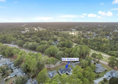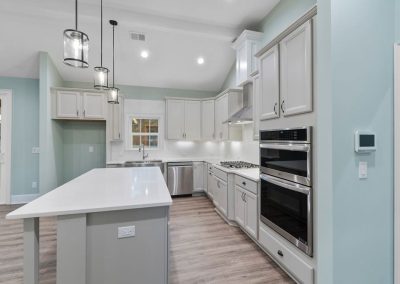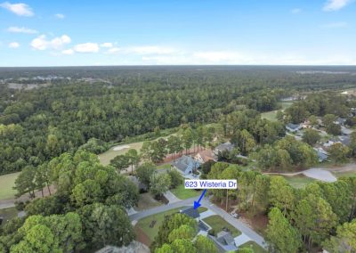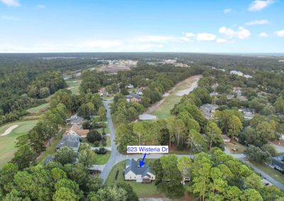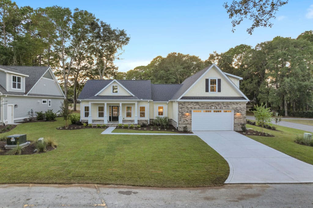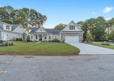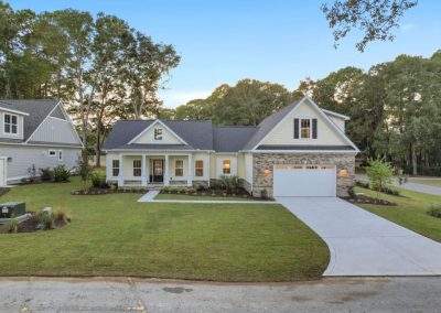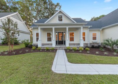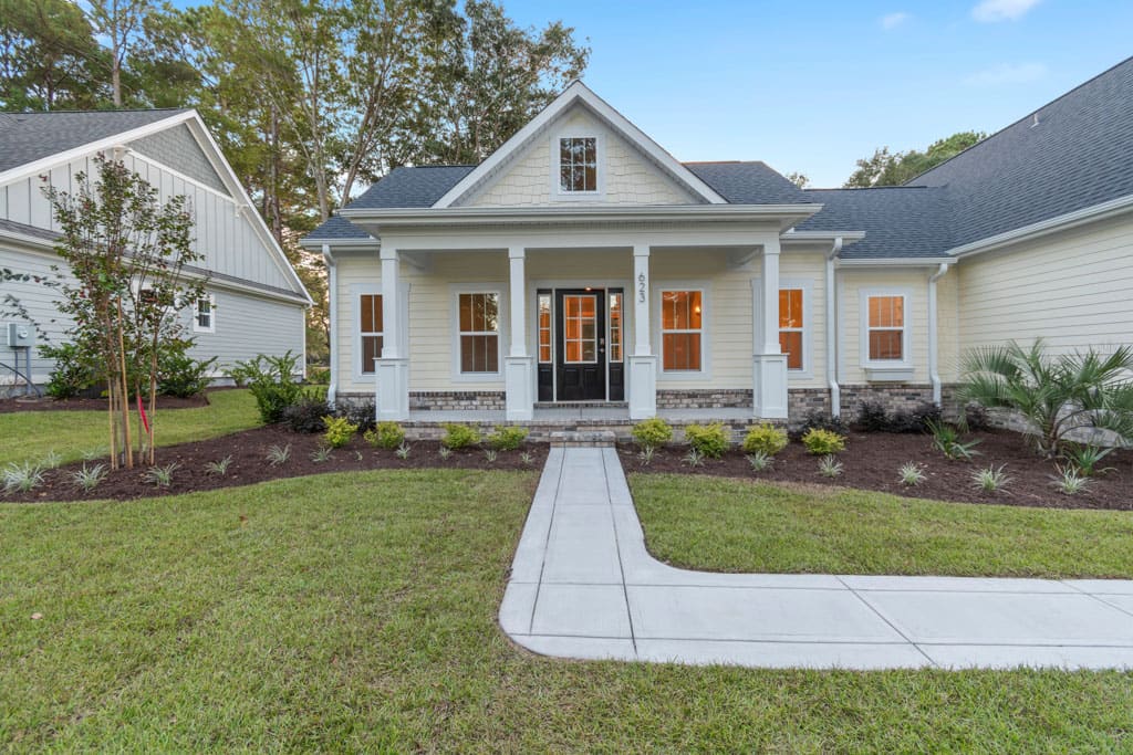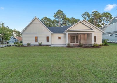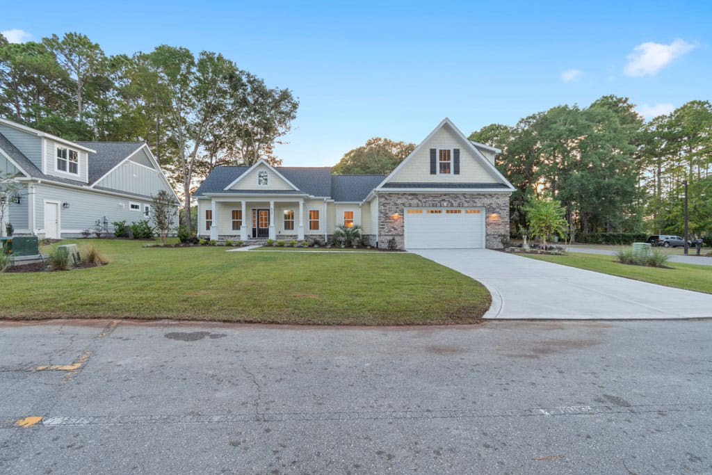 This brand new Riptide home with stunning setting and finishes is move-in ready! With beautiful golf course views from the front and rear of the home and shade trees surrounding the property, this home site is a gem. Both the exterior and interior boast a modern, appealing, coastal craftsman style. Trim detail in the main area of the home includes wainscoting in the foyer and dining area, a vaulted ceiling in the living room with faux wood beams, and a 36″ ventless gas fireplace with shiplap surround. The 4-panel telescoping sliding glass doors to the porch add to the open and airy feel of this home. High-end laminate flooring adorns the living, dining and kitchen areas, with tile in laundry and bathrooms and carpet in bedrooms. The gourmet kitchen includes soft-close cabinetry, a large island, quartz counters, stainless steel apron sink, and under-cabinet lighting. You will LOVE this walk-in pantry with barn door entry, butcher block counters and shelving! Those who enjoy cooking and entertaining will love the LG appliance suite, consisting of a wall/microwave oven combo, 5 burner gas cooktop, dishwasher, and vented hood. The primary suite is your retreat at the end of the day, with its luxurious spa-like feel. Features include a vaulted ceiling with faux beams, huge walk-in closet with melamine shelving, dual sink vanity, linen closet, and a zero-entry tiled shower with LED lit wall niche. The downstairs guest bathroom contains a tub with tiled shower surround and another LED lit wall niche. Imagine yourself enjoying mornings and evenings on your graciously sized, tiled, screened porch, watching the wildlife and the golfers pass by. Guests visiting? They can enjoy the bonus room with its own bathroom and closet as their private quarters. Exterior features of this home include James Hardie siding with stone accents, lush landscaping, and zoned irrigation with drip lines. Other desirable features of this home include a zoned HVAC system, tankless propane water heater, termite bond, and comprehensive warranty plan.