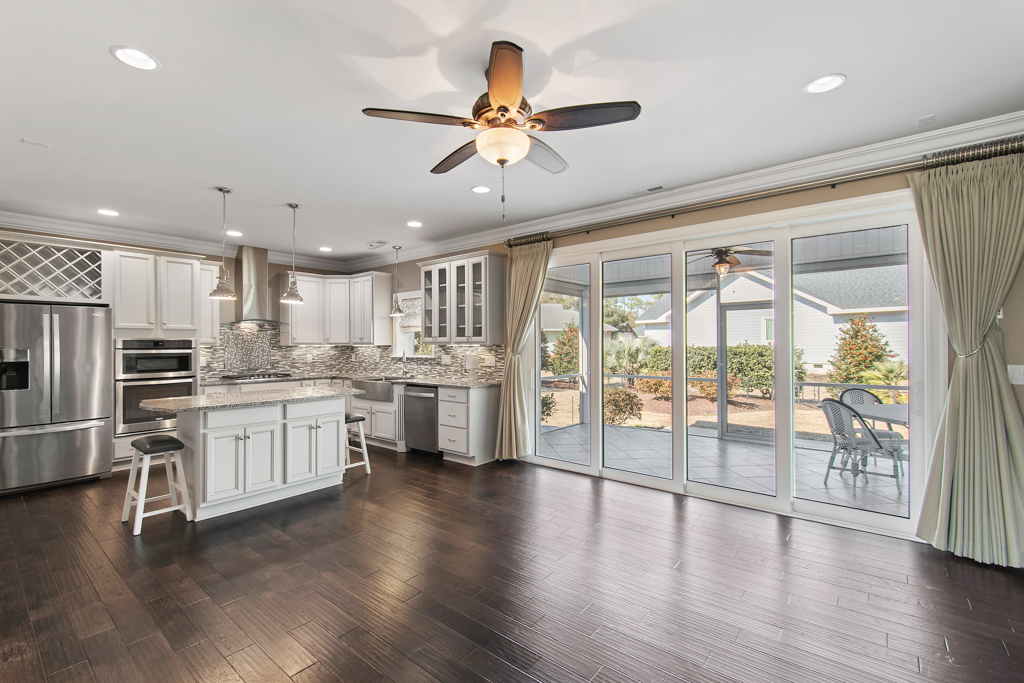 Engineered hardwood floors adorn all of the main living area in the home, including the living room, kitchen, bonus room, dining room, and one of the guest bedrooms. The kitchen is a cook’s dream, with a large island, plenty of prep space, pantry, wall oven, gas cooktop with vented hood, and farmhouse sink. The primary suite is your retreat at the end of the day, boasting a double-tray ceiling with rope lighting, large walk-in closet, and luxurious bathroom. The spa-like bathroom features a double vanity, tiled, walk-in shower, soaking tub and water closet. The bonus room offers multiple possibilities, whether you choose to use it as a guest suite, exercise room or recreation area.