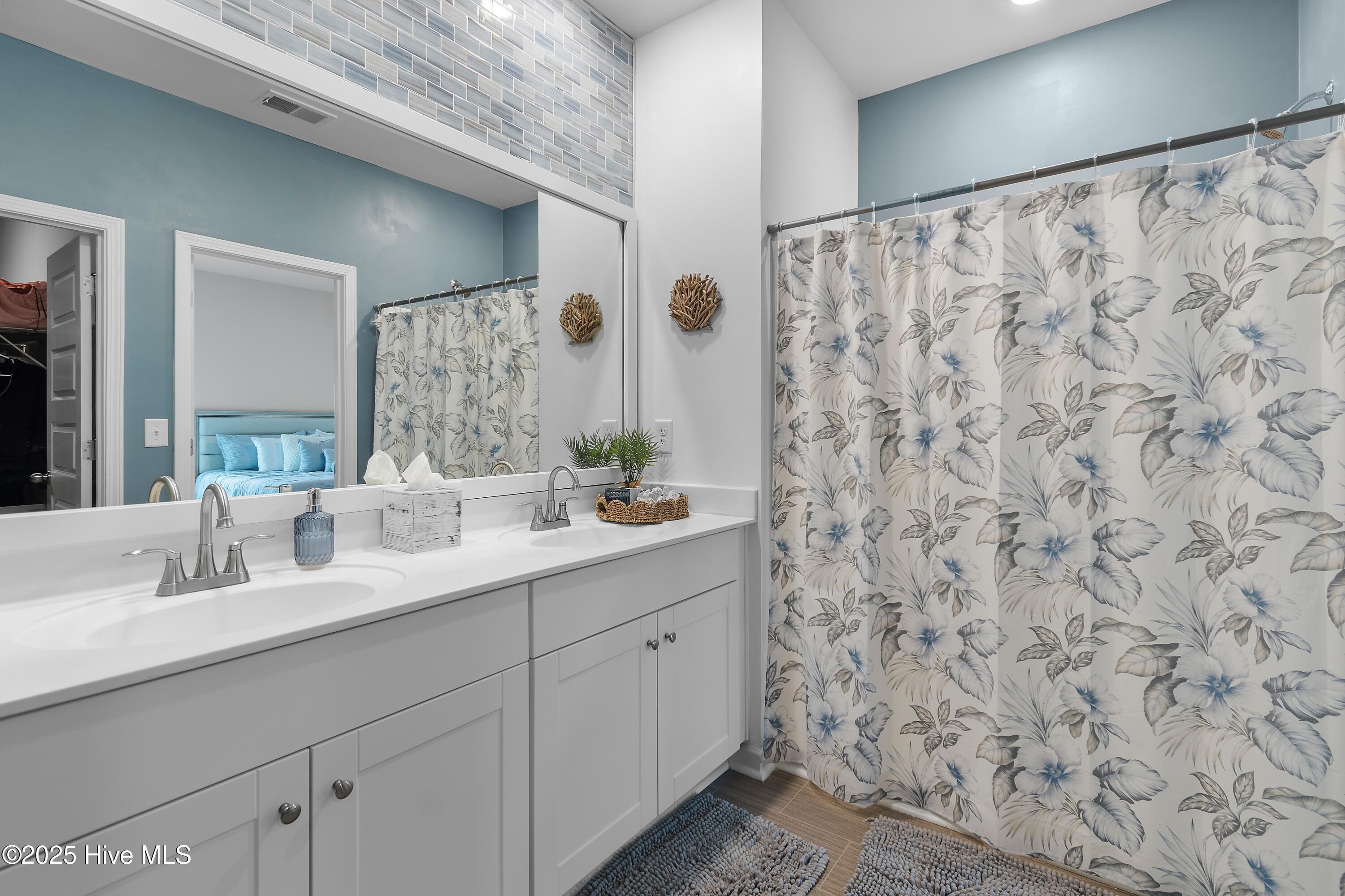 This better than new home in the community of Chatham Glenn is ready to go for a new set of residents! These conscientious owners have maintained this home extremely well so it is practically like new, but also has some nice additions. The open and airy floor plan welcomes you as you enter. This home is light and bright, with plenty of natural light streaming through the windows. The gracious kitchen, with island and pantry, has more than enough counterspace. If you are in need of a fourth bedroom to designate as an office, then you are in luck! There are three guest bedrooms, so there is plenty of room for everyone's needs. The generous primary suite will comfortably fit any traditional bedroom set. The closet is a fantastic size and the ensuite is complete with walk-in shower, dual vanities and updated fixtures. Imagine yourself enjoying your morning coffee or evening beverage on your screened porch, overlooking your spacious backyard complete with shed. With no home behind you, you can enjoy your privacy on this wooded lot. Thoughtful additions to this home include plantation shutters, landscaping, epoxy flooring in the garage, updated mirrors and fixtures in bathrooms, a shed, and a whole-house surge protector. This location is extremely convenient, literally right between the beaches of Ocean Isle Beach and Sunset Beach, You are right down the road from Calabash, with its stores and seafood restaurants as well. Amenities in this community include an open-air lanai and outdoor pool. What are you waiting for? Schedule your showing today!